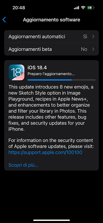 Apple IntelligencePer utilizzare Apple Intelligence in italiano, dal punto di vista software, quindi, dovremo innanzitutto assicurarci che il nostro dispositivo sia aggiornato alla versione più recente del sistema operativo: iOS 18.4, iPadOS 18.4 o macOS Sequoia 15.4.