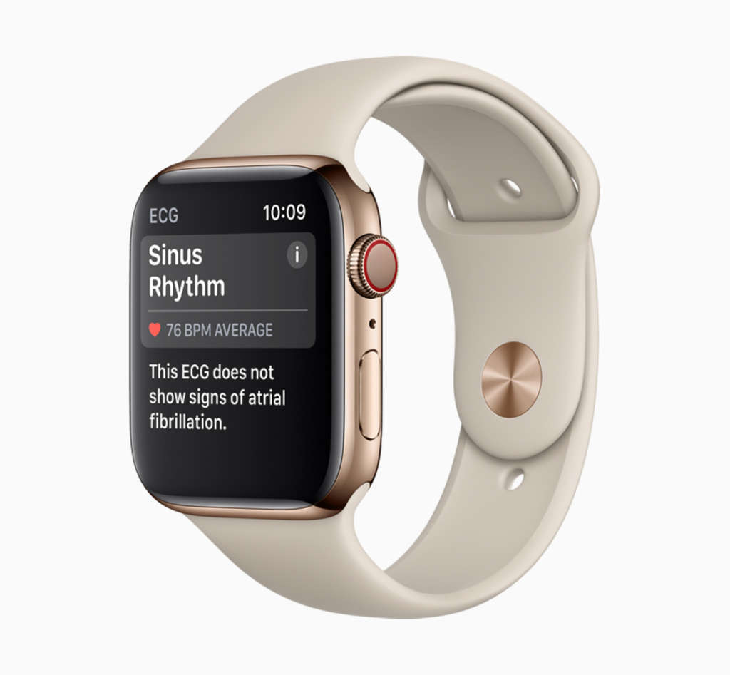 Con la app ECG su Apple Watch Series 4 lo smartwatch più recente della Mela segna un primato di mercato. Diventa infatti il primo prodotto direct-to-consumer che consente agli utenti di fare un elettrocardiogramma dal polso. Apple Watch cattura il battito cardiaco e contribuisce a fornire dati importanti ai propri medici.