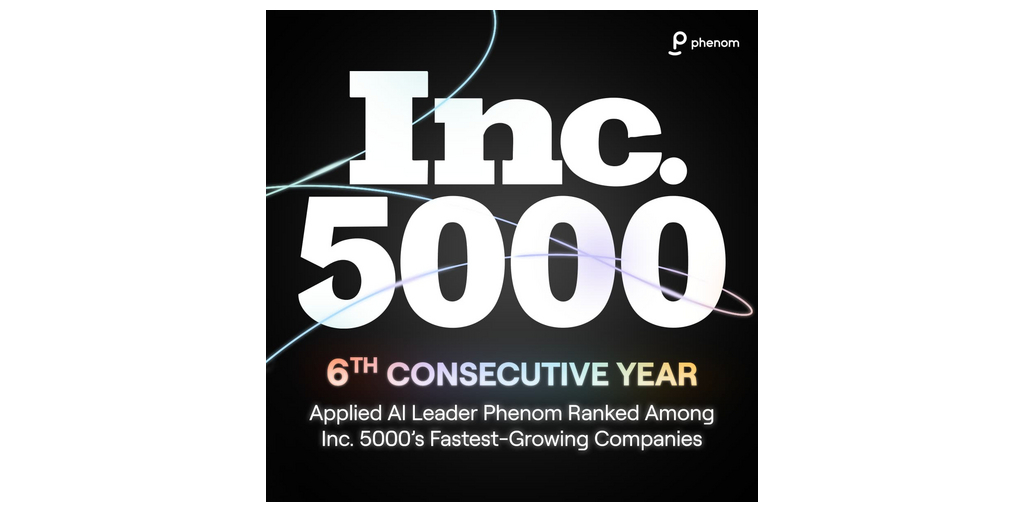 PHILADELPHIA--(BUSINESS WIRE)--#HRTech--For the sixth year in a row, applied AI company Phenom earned a spot on the annual Inc. 5000 list, the most prestigious ranking of the fastest-growing companies in America. Renowned for its ability to help organizations hire faster, develop better and retain longer using scalable agentic AI and automation, the list provides a data-driven snapshot of the most successful companies within the economy’s most dynamic segment — independent, entrepreneurial businesses. Past honorees include companies such as Microsoft, Meta, Chobani, Under Armour, Timberland, Oracle and Patagonia.