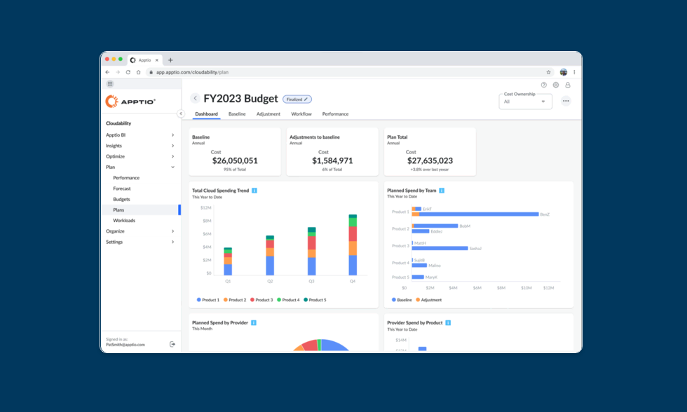 Attore di lunga data nell’ambito della pianificazione IT, Apptio fonda la sua esperienza sulla collaborazione con oltre 1.800 aziende a livello globale impegnate a risolvere complesse sfide di pianificazione degli investimenti negli ultimi 15 anni. Con questa nuova soluzione, Apptio intende rafforzare il suo posizionamento di protagonista del mercato nell’affrontare le sfide uniche della pianificazione di spesa per il cloud, facendo da apripista a una migliore pianificazione allineata agli obiettivi di business e alle priorità degli stakeholder, fornendo la flessibilità necessaria per adattarsi ai cambiamenti in corso.