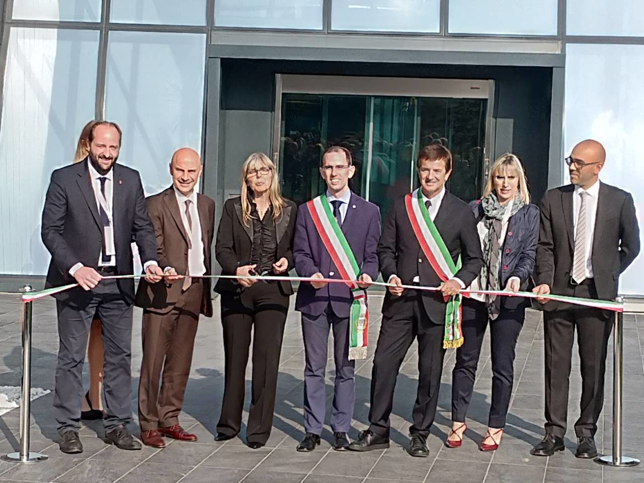 Il tradizionale taglio del nastro alla presenza delle autorità locali: al centro il vicesindaco di Ponte San Pietro e alla sua sinistra il sindaco di Bergamo. All'estrema destra il Ceo di Aruba Stefano Cecconi
