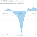 Unsurprisingly, retail deals with the highest intensity of impact with a 6% increase during preparation, followed by a 19% decrease during the landfall week and a 28% increase during recovery.