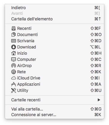 1. Dalla barra menu del Finder, seleziona il comando Vai > AirDrop.