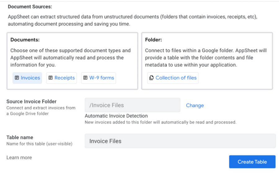 AppSheet Automation permette anche a chi non ha competenze di programmazione di rimodellare il proprio lavoro con nuove potenti funzionalità, tra cui l’estrazione più intelligente dei dati strutturati dai documenti e la compatibilità con una gamma più ampia di data source come Google Sheets e Drive.