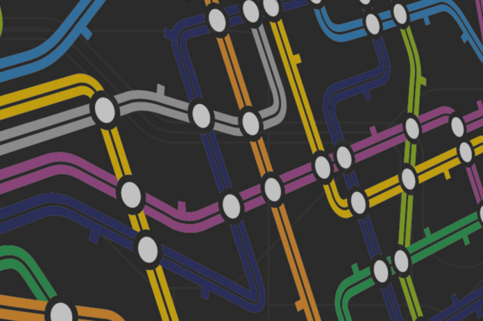 La Continuous Delivery Map assomiglia a una mappa dei trasporti metropolitani, dove i tool che fanno parte della toolchain di DevOps sono classificati e rappresentati come fermate delle linee metropolitane e contrassegnati da colori diversi.