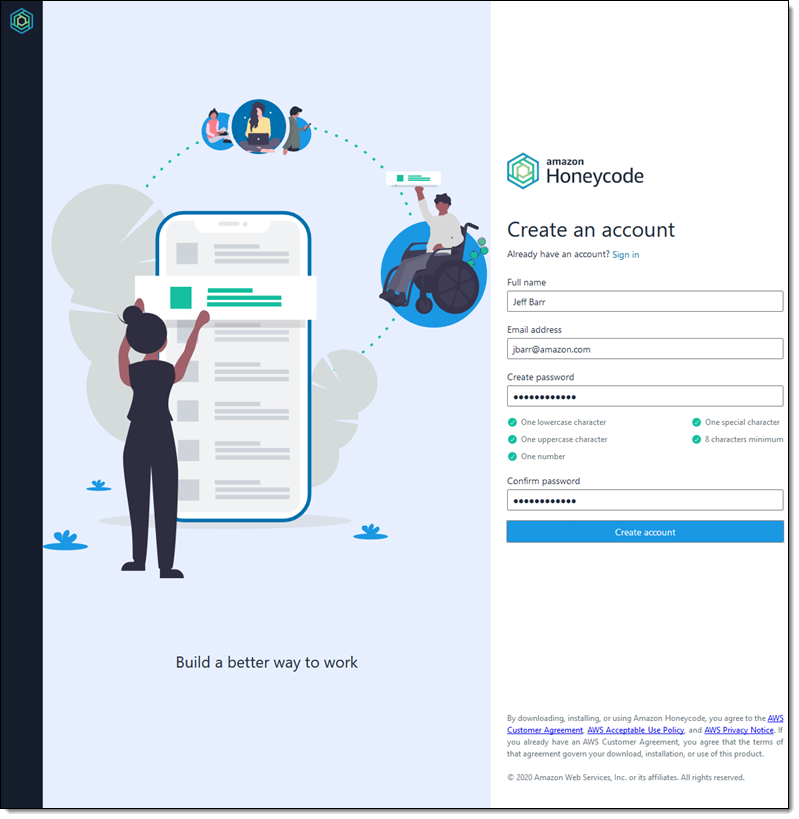 Amazon Honeycode attualmente funziona solo nella regione AWS US West in Oregon, ma arriverà presto in altre aree.