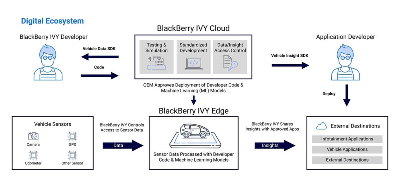 BlackBerry IVY è una piattaforma software scalabile e connessa al cloud che consentirà alle case automobilistiche di fornire una modalità sicura per leggere i dati dei sensori del veicolo, normalizzarli e creare insght fruibili sui dati sia localmente nel veicolo che nel cloud.