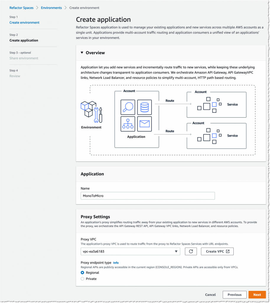 Aws Migration Hub Refactor Spaces (Preview) offre un punto di partenza per il refactoring incrementale delle applicazioni in microservizi.