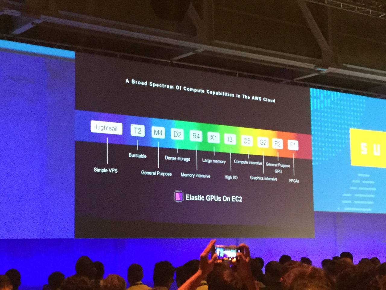I servizi di computing variano a seconda delle necessità dell’utente, da Lightsail per i siti web a salire verso le applicazioni che richiedono memoria, fino alle istanze di elaborazione intensiva, grafica, intelligenza artificiale, e, all’estremo, con FPGA, cioè chip personalizzabili che vengono creati da utente per eseguire particolari algoritmi.
