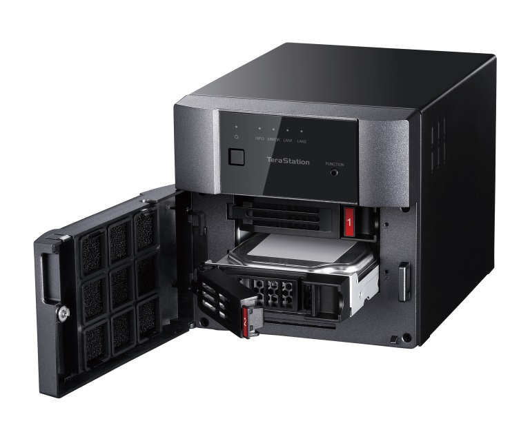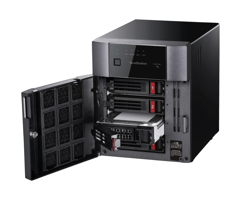 TeraStation 3410DN. Anche in questo caso, il modello a 4 vani replica le (già eccellenti) doti del fratello minore. La famiglia TeraStation, in generale, ha una spiccata vocazione business. Perfetto per le nostre esigenze; sicuramente non adatto a chi cercasse funzionalità multimediali avanzate (ma non è affatto il suo scopo).