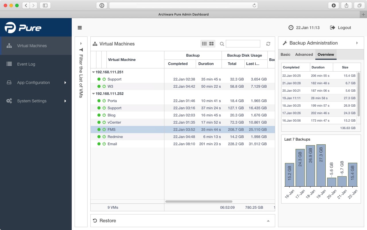 Archiware Pure è una soluzione di backup per VMware offerta con licenza software free e unlimited.