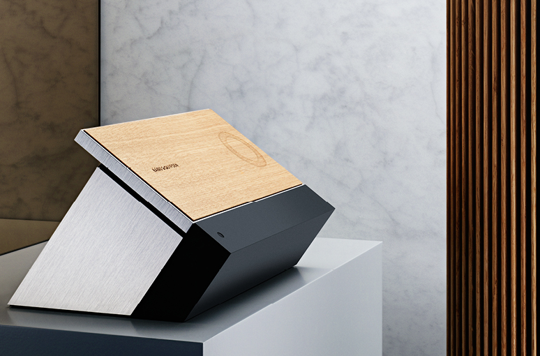 Come si sa, il legno non è di per sé un conduttore e perciò non può svolgere una funzione touch. Per dotarlo di questa capacità, B&O ha collocato sotto una sottile superficie di legno, una sorta di rotella altamente sensibile al tocco. Questo ha permesso all’azienda di creare una confortevole sensazione tattile ma anche di consentire all’utente di impartire precisi comandi semplicemente con un dito.