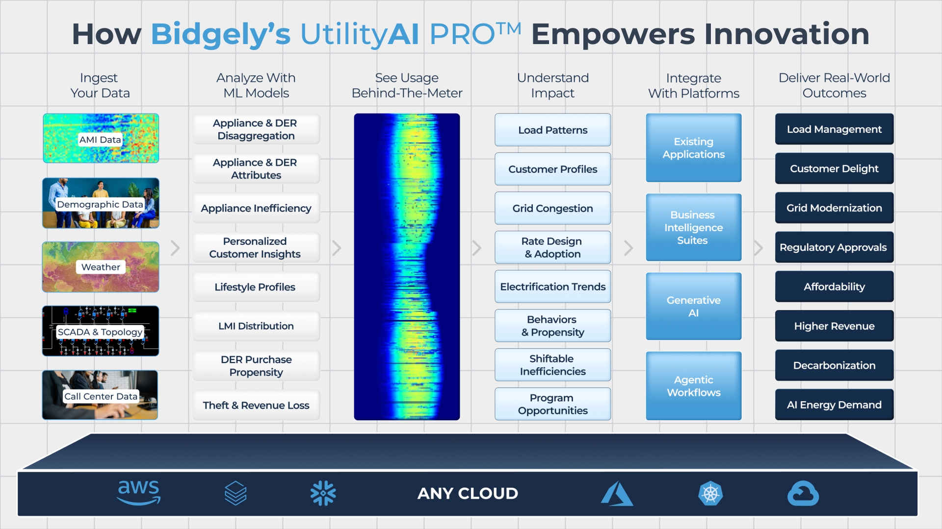 LOS ALTOS, Calif.--(BUSINESS WIRE)--Bidgely oggi ha presentato UtilityAI Pro™, la prima e più completa piattaforma di intelligenza artificiale (IA) verticale, progettata appositamente per i fornitori globali di energia e servizi pubblici e le DISCOM (aziende di distribuzione). UtilityAI Pro consente ai leader dell'innovazione tecnologica e digitale di implementare i modelli avanzati di apprendimento automatico (ML) nel loro ambiente di dati preferito per analizzare l'infrastruttura di misurazione avanzata (AMI), dati del cliente e della rete. La soluzione esegue questa analisi con granularità 10 volte maggiore, offrendo informazioni più dettagliate dietro le misurazioni rilevate dal contatore sul comportamento del cliente, il consumo a livello di elettrodomestico e le prestazioni di rete.