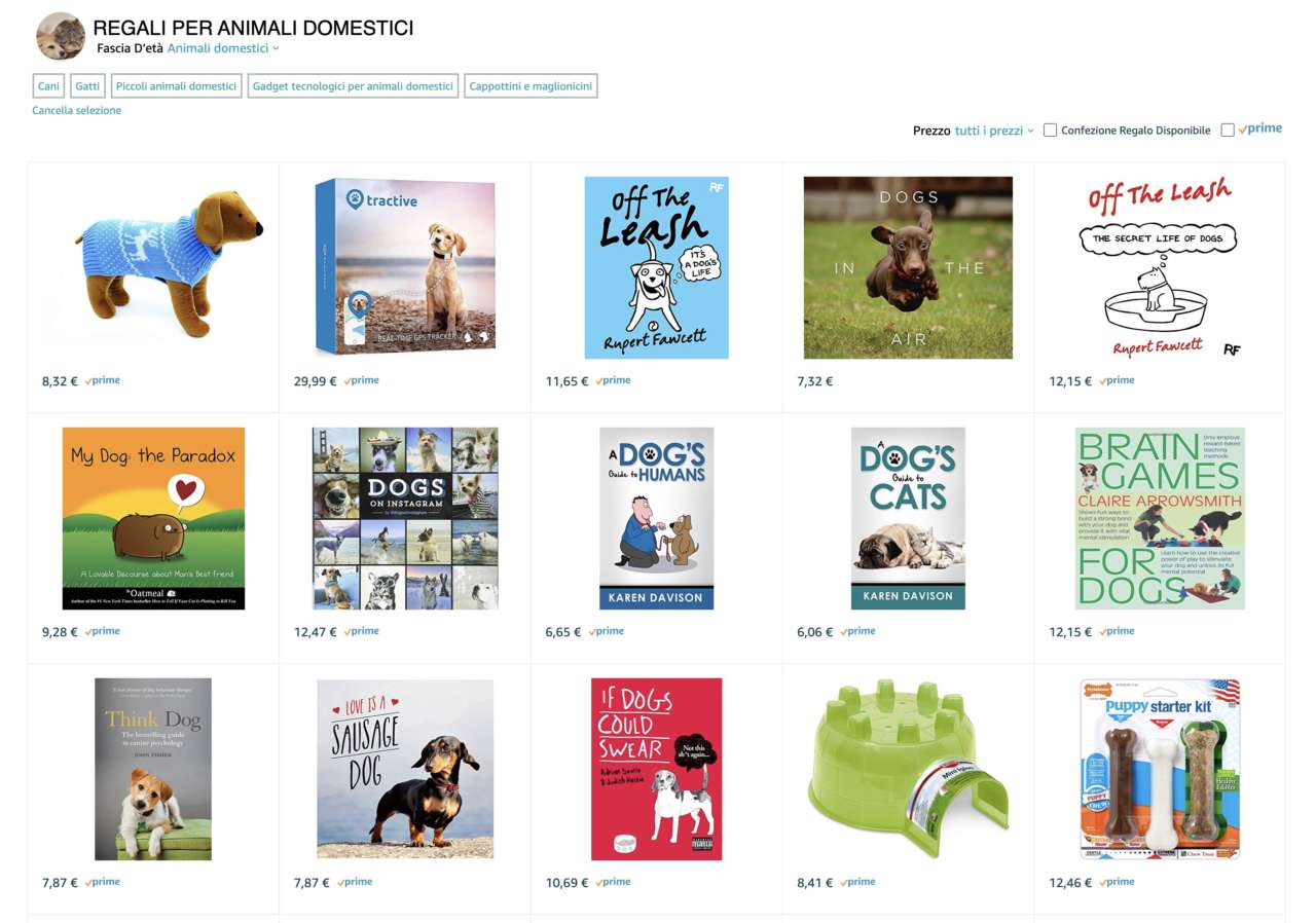 Per rendere più facile trovare il regalo di Natale per i propri cari, compresi i nostri amici animali, Amazon.it ha lanciato Ricerca Regali. Disponibile nel Negozio di Natale su Amazon.it, Ricerca Regali fornisce suggerimenti sulla base degli interessi della persona per la quale si sta acquistando il regalo e adattati secondo ogni esigenza di budget.