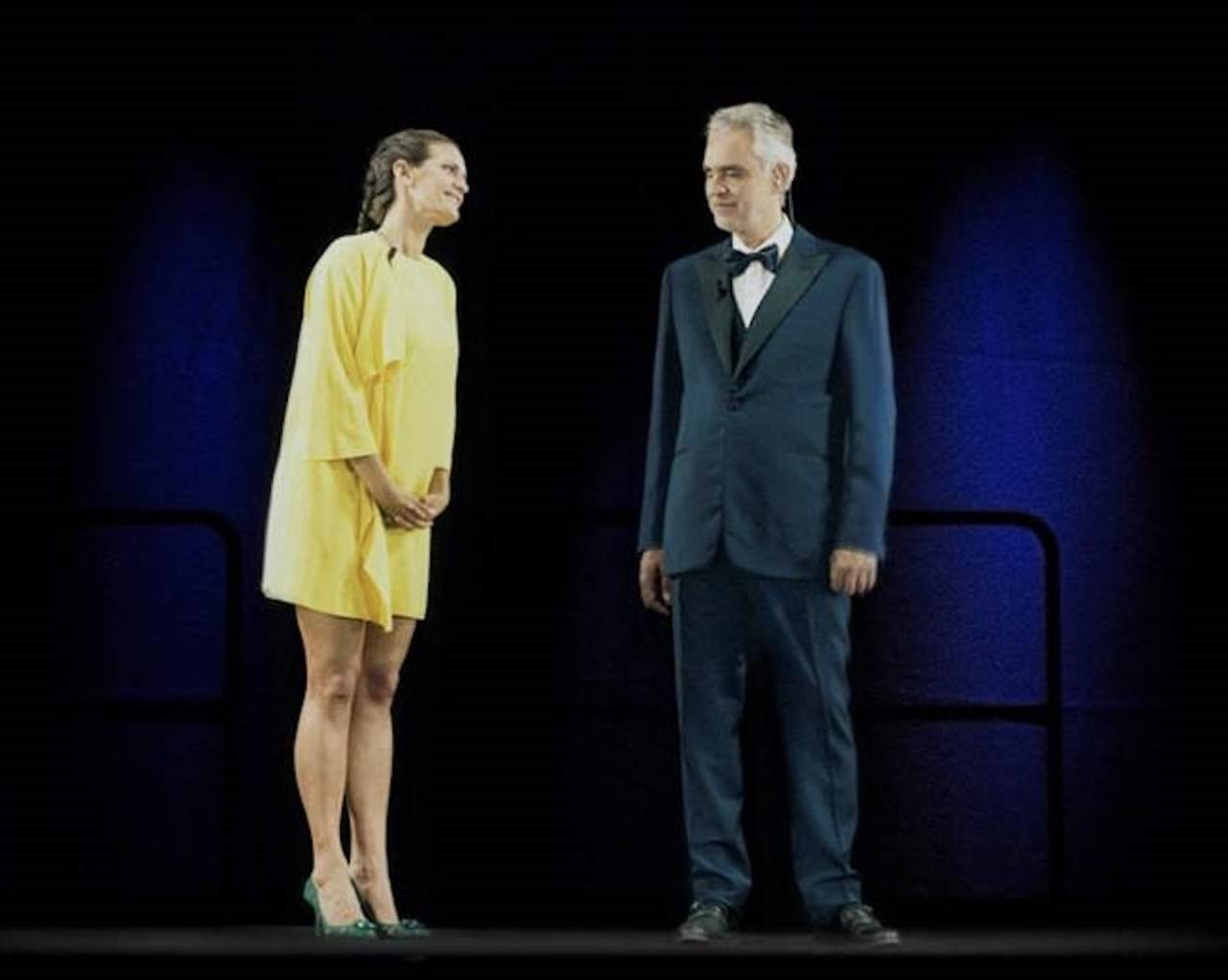 Clou della serata è stato l’ingresso dell’ologramma di Andrea Bocelli e sua moglie Veronica. Dopo uno scambio di battute, su richiesta di Puccini, Bocelli ha accennato a un vocalizzo, interrotto dal vero Andrea Bocelli, che è restato sul palco cantando con l’avatar di Puccini impegnato a suonare in tempo reale.