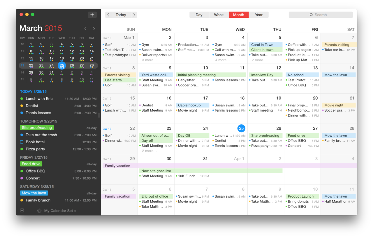 Tra le altre novità c’è una nuova opzione di visualizzazione per gli eventi che si estendono per più giorni. Questi inoltre visualizzano gli orari di inizio e fine anche nella vista mensile. La finestra “mini” di Fantastical può essere staccata ed è ora utilizzabile nella modalità Split View di macOS.