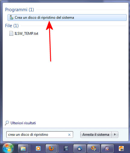 Nel caso di Windows 7, è possibile generare manualmente un disco di ripristino del sistema dal quale effettuare l’avvio del personal computer cliccando sul pulsante Start quindi digitando Crea un disco di ripristino nella casella Cerca programmi e file.