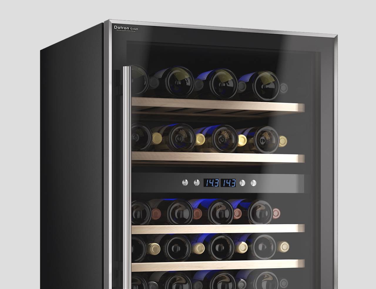 La prima cantinetta intelligente Datron è un’elegante cantinetta frigo della Linea Classica da 40 bottiglie champagnotte prodotta dalla casa austriaca, adatta sia a incasso che a libera installazione, connessa alla rete internet domestica e arricchita da invisibili sensori in grado di monitorare temperatura e umidità, interne ed esterne, e verificare la qualità dell’aria.