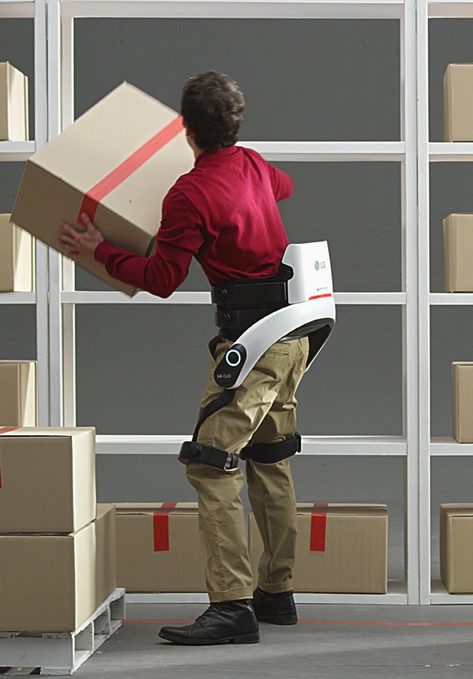 Il robot indossabile Lg CLOi SuitBot supporta la parte inferiore del corpo dell’utente. Il suo scopo è di ridurre lo stress durante le azioni in cui serve sollevare e piegarsi.