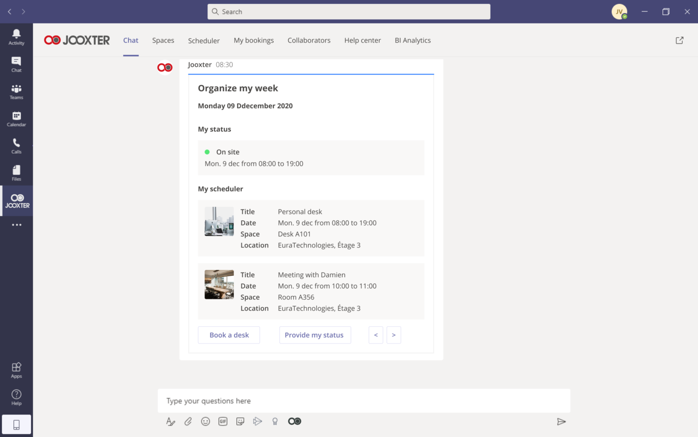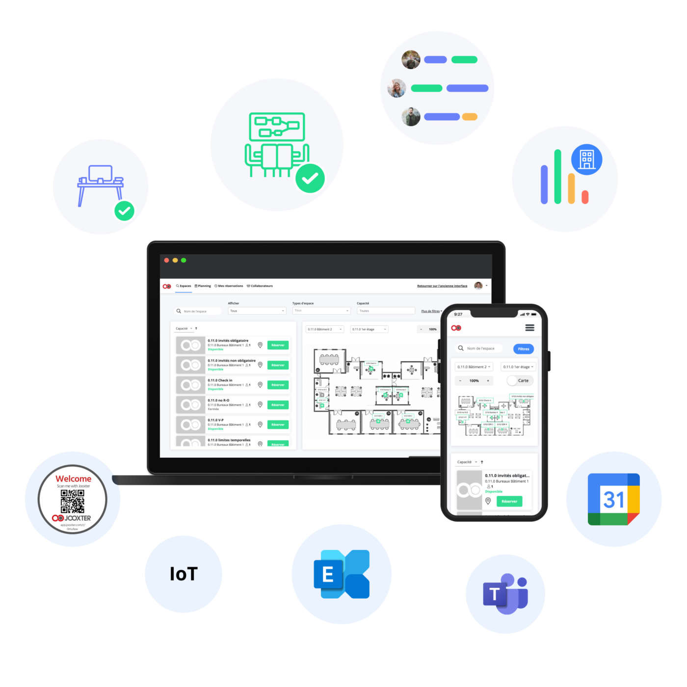 Jooxter è inoltre una soluzione integrata nel proprio workplace, ad esempio con le applicazioni di uso quotidiano come Microsoft Teams o Google Calendar.