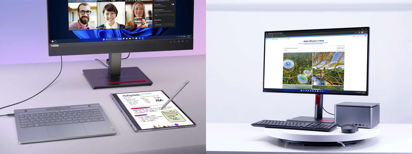 Per le PMI che desiderano una soluzione informatica onnicomprensiva, Lenovo ThinkCentre neo 50a 27 Gen 5 e ThinkCentre neo 50a 24 Gen 5 offrono produttività e collaborazione in un dispositivo elegante. Con un nuovo look più snello, i computer all-in-one (AIO) da 27 e 24 pollici sono alimentati da un processore fino a Intel Core i7 e fino a 32 GB di RAM DDR5 e brillano con un sRGB del 99%, TÜV Rheinland Display certificato con frequenza di aggiornamento di 100 Hz. Entrambi gli AIO sono i primi computer entry-level per PMI con un supporto di ricarica wireless opzionale per mantenere i dispositivi carichi 24 ore su 24, 7 giorni su 7.