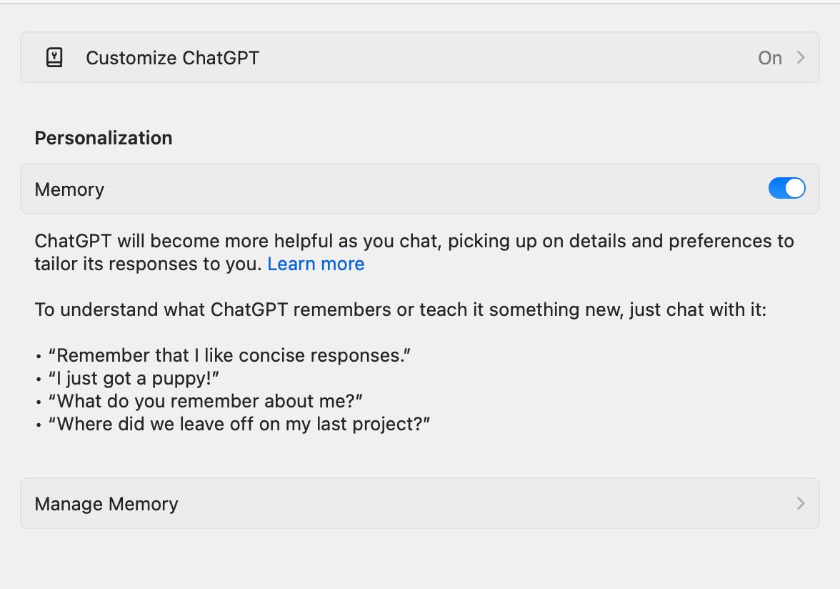ChatGPT diventa via via più utile e “personale” man mano che conversiamo con il chatbot, ma lo si può anche istruire in modo esplicito su determinati dettagli da ricordare.