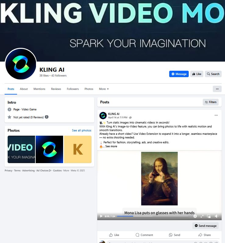 L’attacco inizia con falsi annunci sui social media. Dall’inizio del 2025, il team di Check Point Research ha identificato circa 70 post sponsorizzati, che promuovono in maniera non autentica il popolare strumento di intelligenza artificiale Kling AI. Questi annunci provengono da pagine Facebook convincenti ma fraudolente, progettate per assomigliare alla vera azienda.
