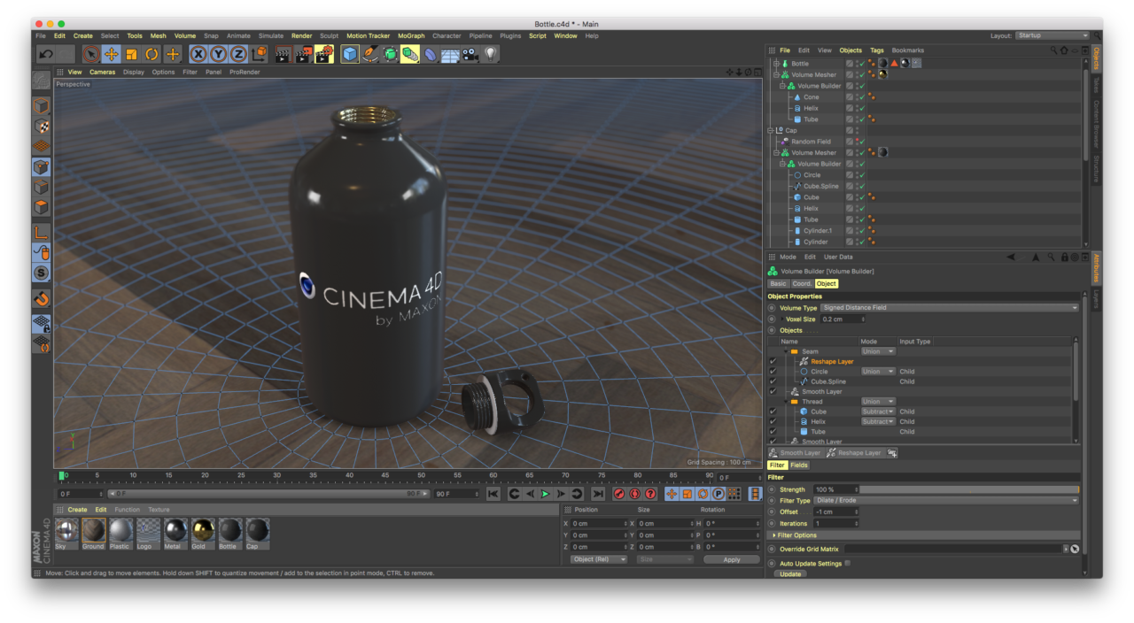 Cinema 4D Release 20È ora possibile creare modelli complessi aggiungendo o sottraendo forme base in operazioni di tipo booleano. Questo grazie ai nuovi strumenti Costruttore Volume e Generatore Mesh Volume, entrambi basati su OpenVDB.
