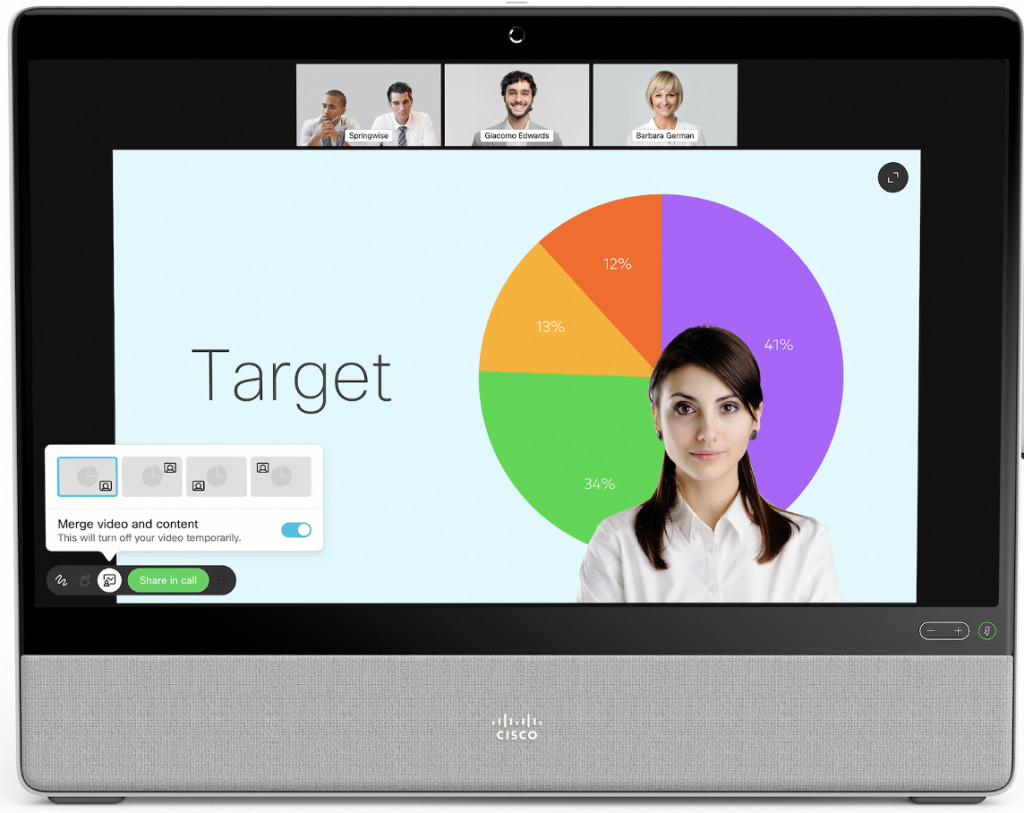 Questa è la più significativa ma non è l’unica novità per Webex. Cisco ha infatti anche annunciato l’introduzione della prima fase dell’immersive share, ora disponibile sui dispositivi Webex Desk Pro. Sovrapponendo l’immagine dello speaker al di sopra del contenuto condiviso, questa funzionalità consente un’esperienza di presentazione più dinamica e coinvolgente.