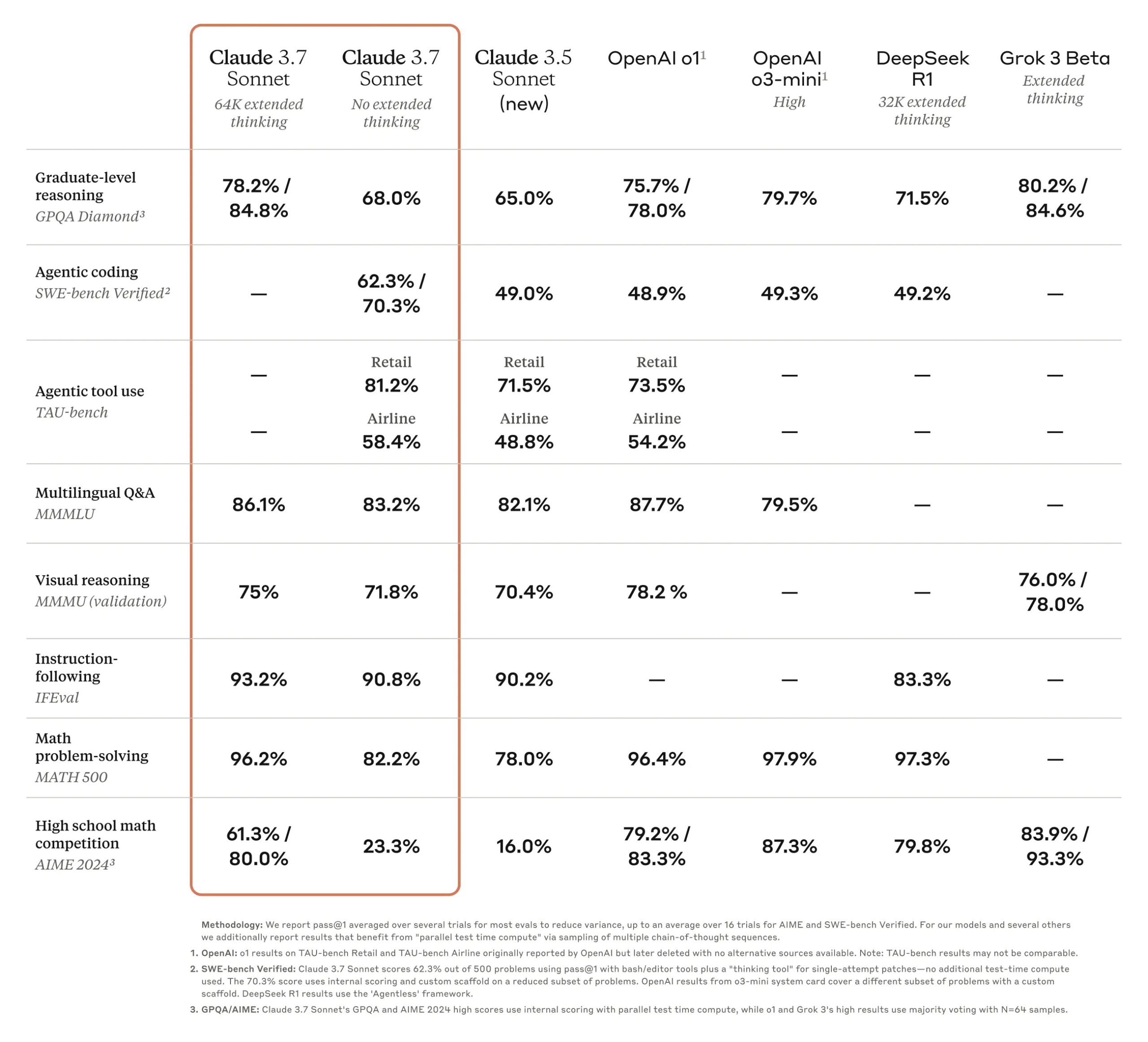 Anthropic Claude 3-7 SonnetIn terzo luogo, nello sviluppo dei modelli di ragionamento Anthropic ha ottimizzato un po’ meno per i problemi delle competizioni matematiche e informatiche, spostando invece l’attenzione sui compiti del mondo reale che riflettono meglio l’uso effettivo dei LLM da parte delle aziende.
