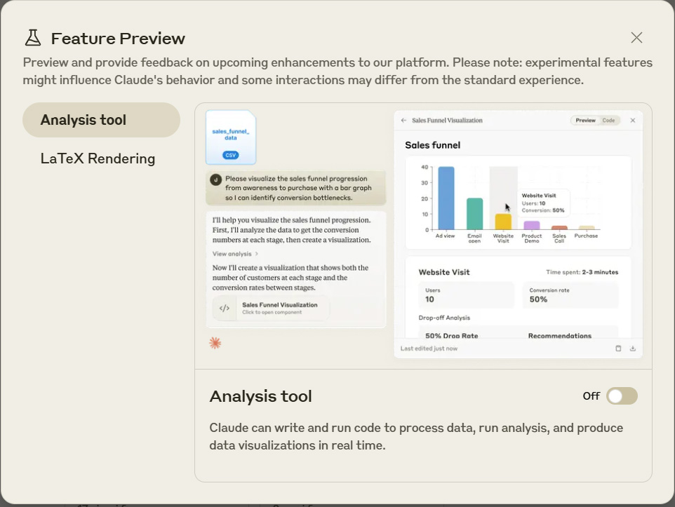 Anthropic sta introducendo in Claude.ai lo strumento di analisi, una nuova funzionalità integrata che consente a Claude di scrivere ed eseguire codice JavaScript. Claude può ora elaborare i dati, condurre analisi e produrre insight in tempo reale. L’analysis tool è disponibile per tutti gli utenti di Claude.ai in anteprima.