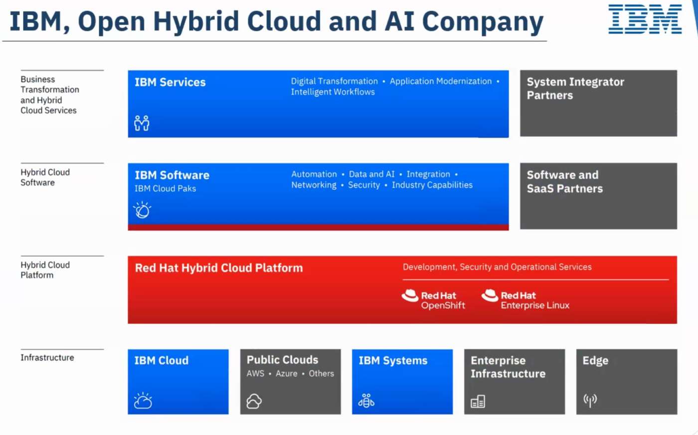 Nel nuovo schema il blu della Ibm tecnologica poggia sul rosso di Red Hat e il suo software viene reingegnerizzato per lavorare in maniera nativa sulla piattaforma di containerizzazione in ottica multicloud.