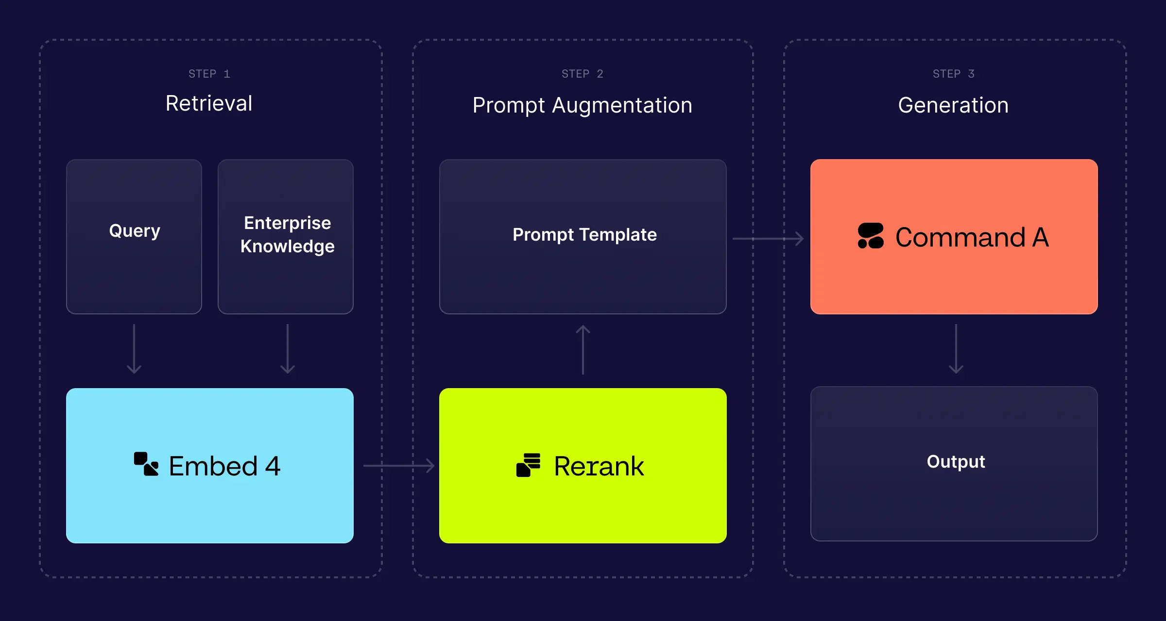 Per essere utili, i sistemi di intelligenza artificiale devono comprendere il contesto in cui operano. Gli assistenti AI impiegati nelle aziende svolgono questo compito attraverso un processo chiamato Retrieval-Augmented Generation (RAG). In sostanza, il modello AI generativa (ad esempio Command A) che alimenta l’esperienza di conversazione si affiderà a un motore di ricerca – collegato a informazioni aziendali proprietarie – per reperire informazioni pertinenti alle domande degli utenti prima di rispondere. In questo modo si migliora l’utilità delle risposte e si evitano le allucinazioni.