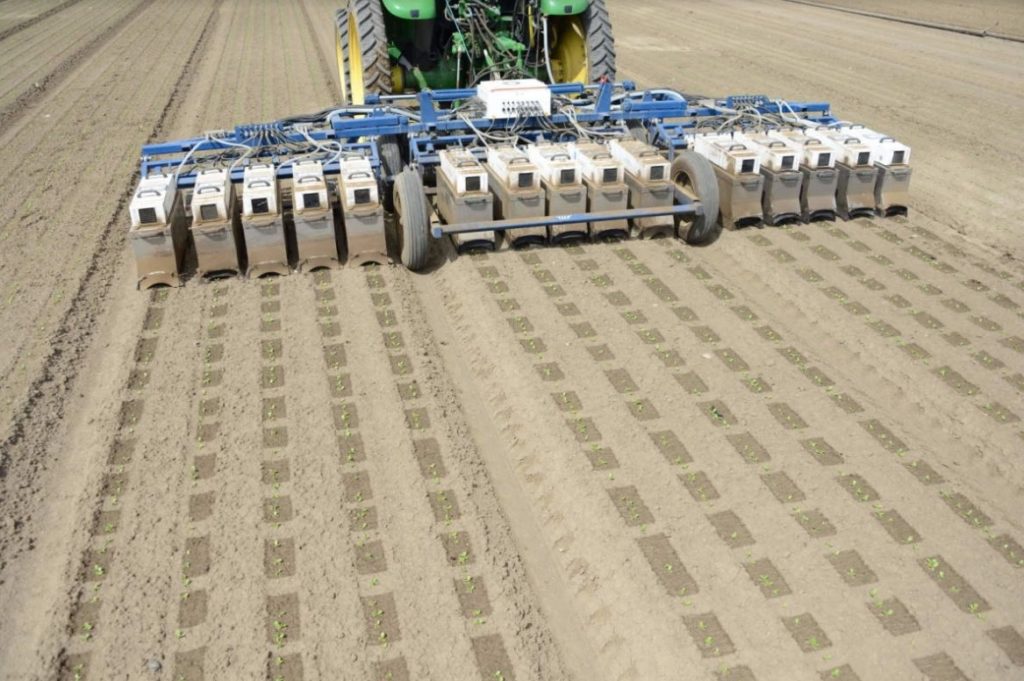 Ciascun modulo di LettuceBot comprende due telecamere e un attuatore per la distribuzione mirata di diserbante sulle coltivazioni.