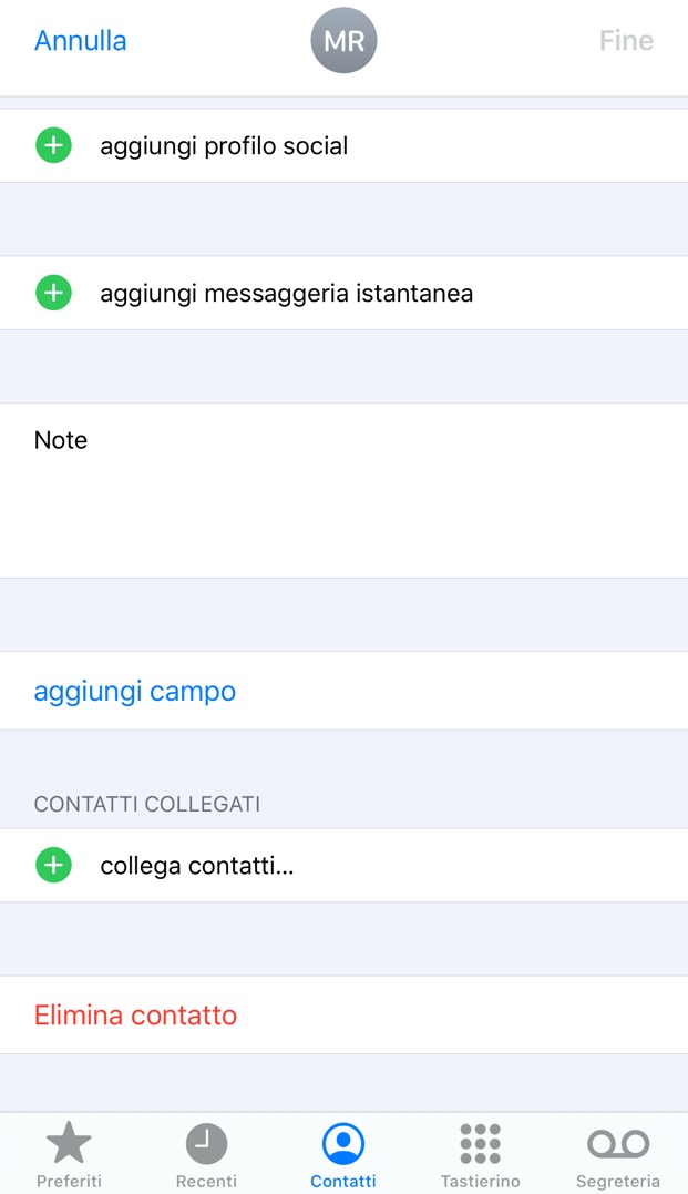 • Ora il campo Soprannome è visibile nella scheda del contatto selezionato, e puoi inserire il valore che preferisci.
