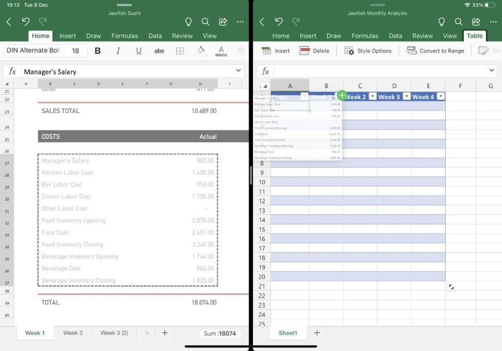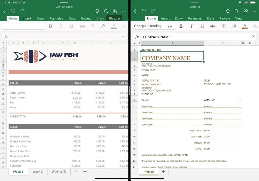 Ad esempio, nel caso di Excel, è ora possibile aprire due cartelle di lavoro una accanto all’altra e sfruttare appieno lo schermo più grande del proprio iPad.