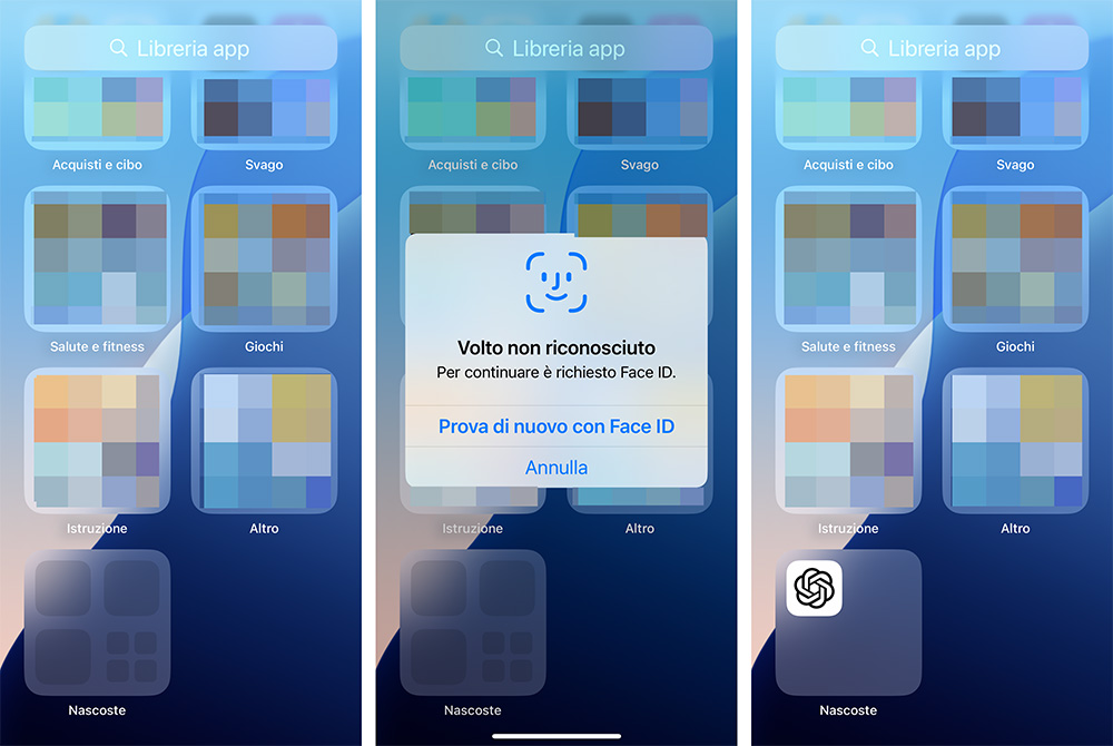 Attenzione: Apple stessa sottolinea che quando nascondiamo un’app, non diventa completamente invisibile: il suo nome verrà ancora mostrato in alcuni punti del sistema operativo, come ad esempio alcune schede delle Impostazioni e dell’App Store. Quindi non possiamo considerarlo uno strumento di sicurezza totale e definitivo per contenuti particolarmente critici, bensì un ulteriore livello di protezione che dovrebbe essere sufficiente in molte circostanze.