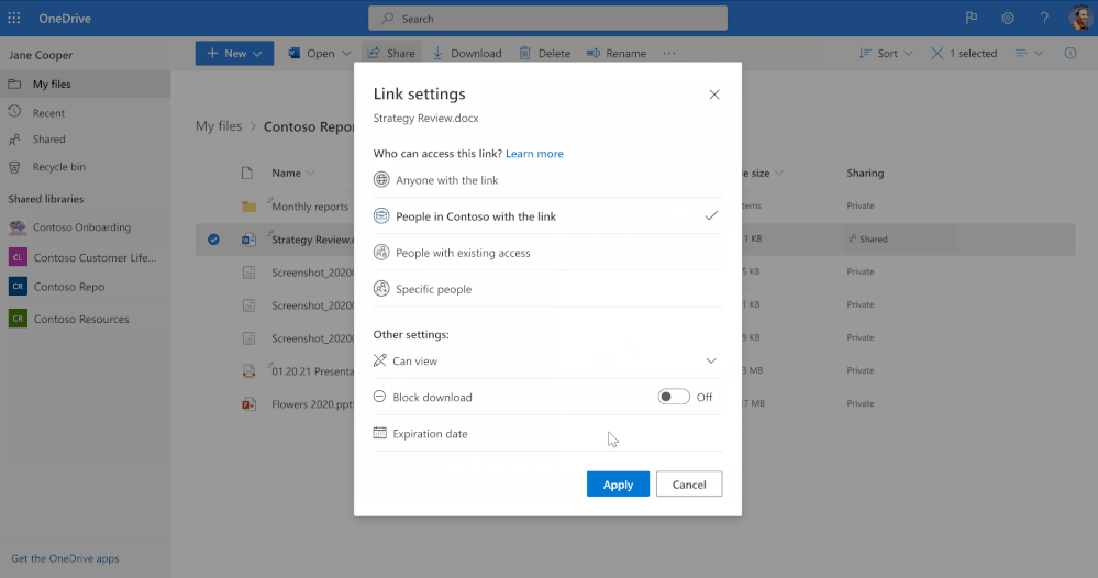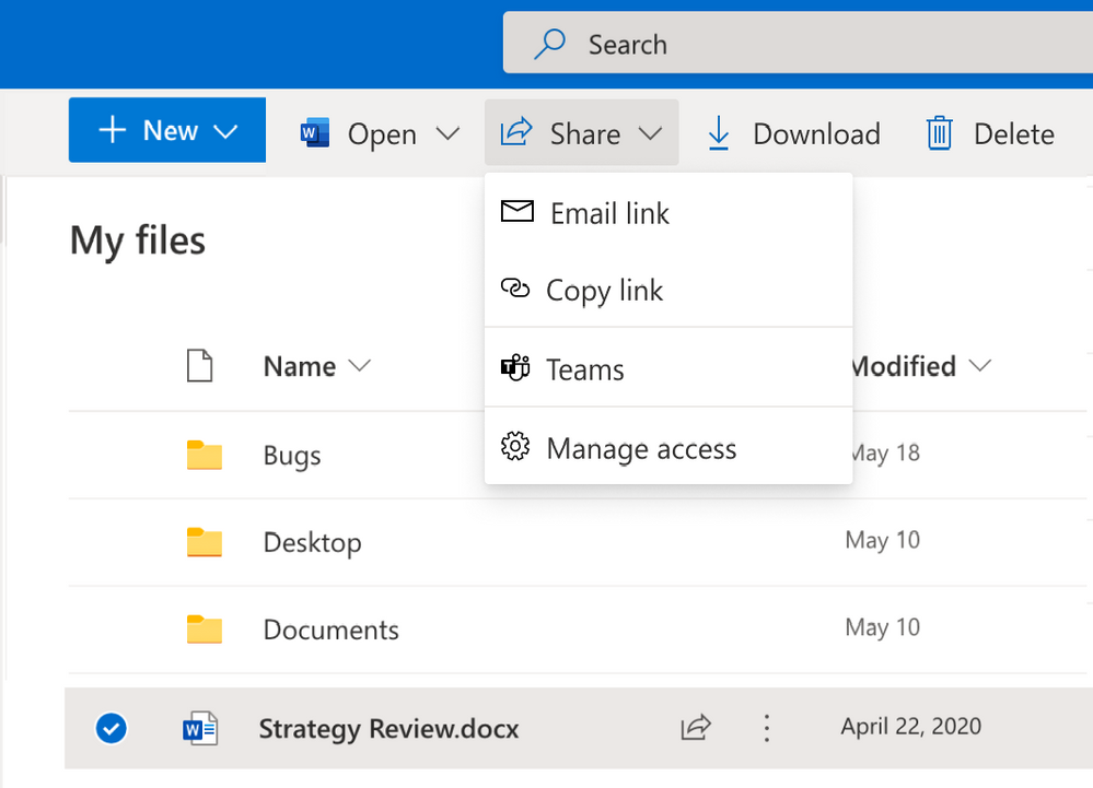 Microsoft ha ridisegnato la finestra di dialogo Condividi per offrire un accesso più facile alla vista Gestisci accesso e dare più visibilità su chi ha accesso al contenuto dell’utente. Questi miglioramenti saranno disponibili nel corso dell’anno.