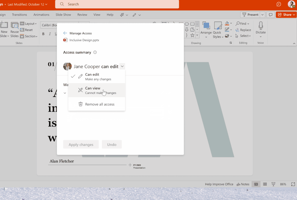 Dopo la condivisione, il menu contestuale mostrerà anche un’opzione per selezionare le impostazioni di accesso per ulteriori controlli di condivisione. Il menu dropdown di condivisione sarà introdotto in Microsoft 365 nel corso dell’anno.