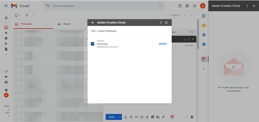 Vediamo allora come sfruttare i vantaggi del componente aggiuntivo Adobe Creative Cloud in due tra le app più usate di Google Workspace: Gmail e Documenti.