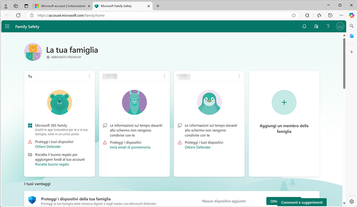 Ci focalizziamo qui sulle funzionalità concernenti principalmente la condivisione dell’abbonamento Microsoft 365 Family. Nella documentazione Microsoft è possibile saperne di più su Family Safety, come anche sull’abbonamento a Microsoft 365 Family.
