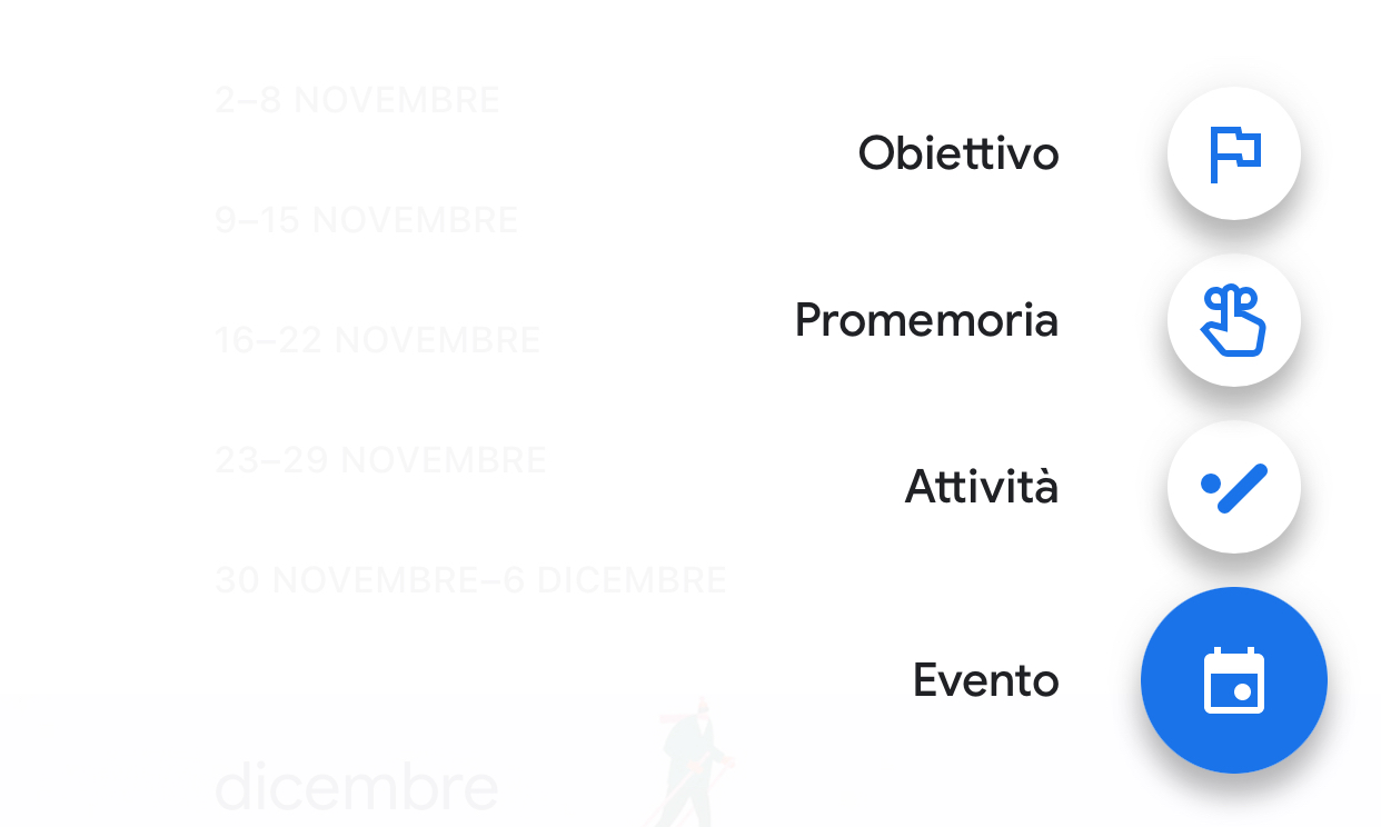 3. Nel menu a comparsa che viene visualizzato, oltre a Obiettivo, Promemoria ed Evento ora c’è anche la nuova opzione Attività. Tocca dunque su Attività.