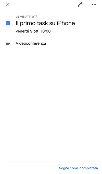 Con un tap sulla singola attività puoi aprirne la scheda per visualizzare i dettagli e, se lo desideri, modificarli; così come per segnare l’attività come completata.
