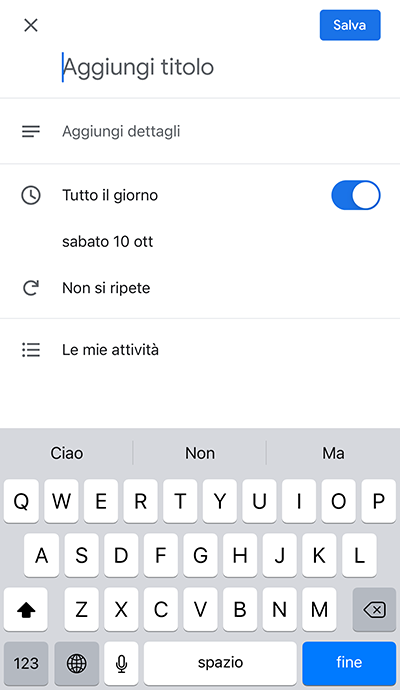 Vediamo allora innanzitutto come creare una nuova attività in Google Calendar su iPhone.