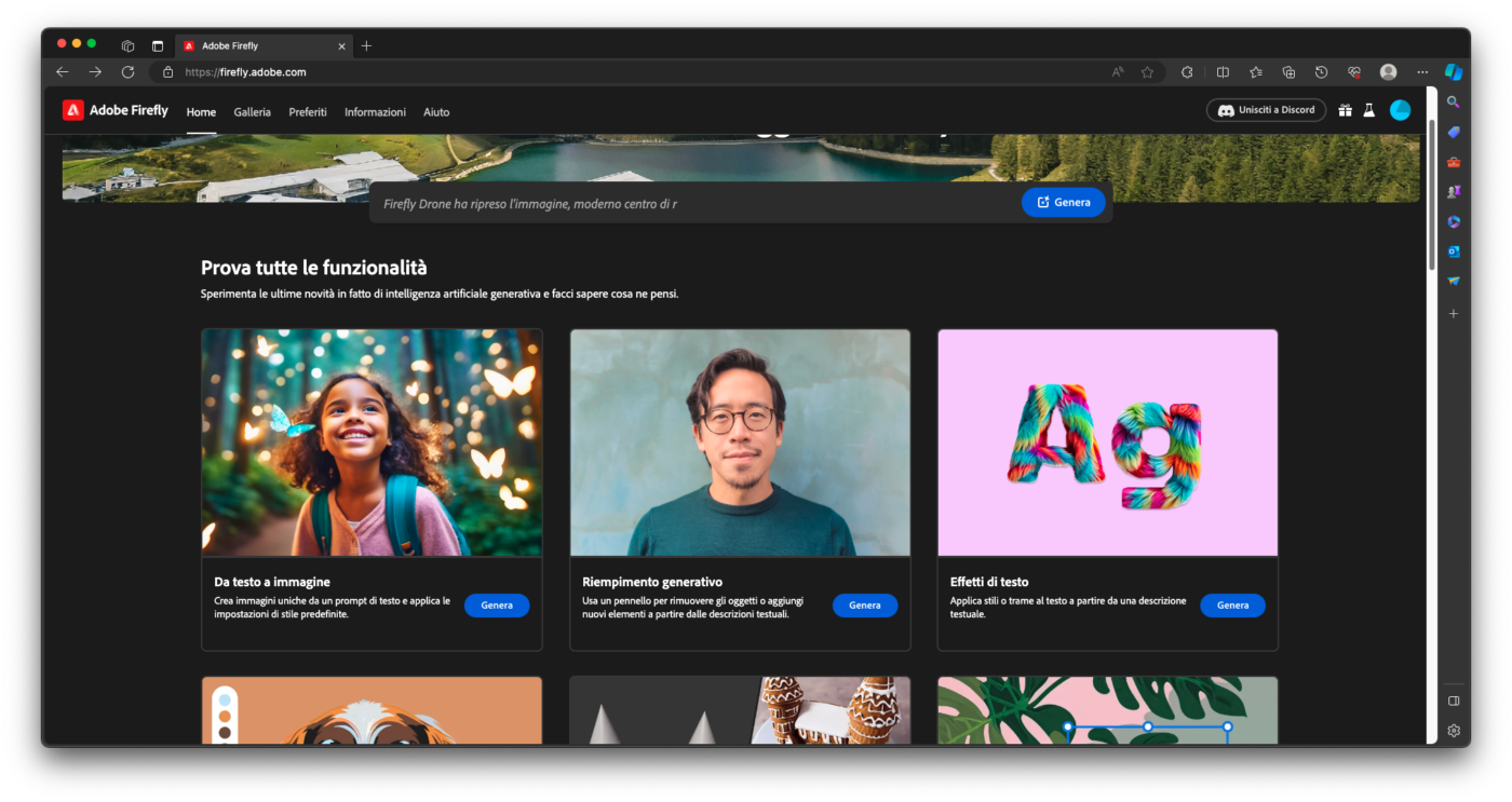 Ma, benché sia probabilmente la più spettacolare, quella di text-to-image non è certo l’unica funzionalità disponibile nell’applicazione web di Adobe Firefly.