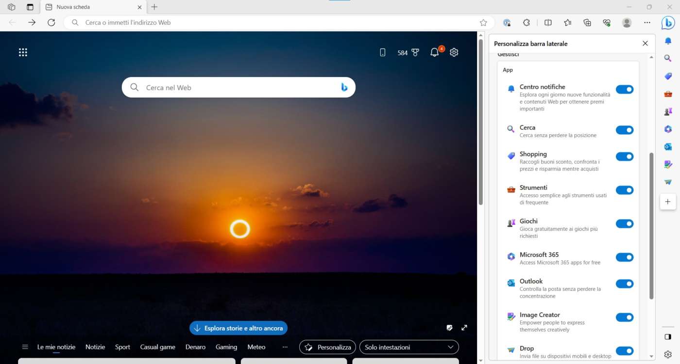 Una volta attivata l’icona, facciamo quindi clic su Image Creator nella Barra laterale di Microsoft Edge.