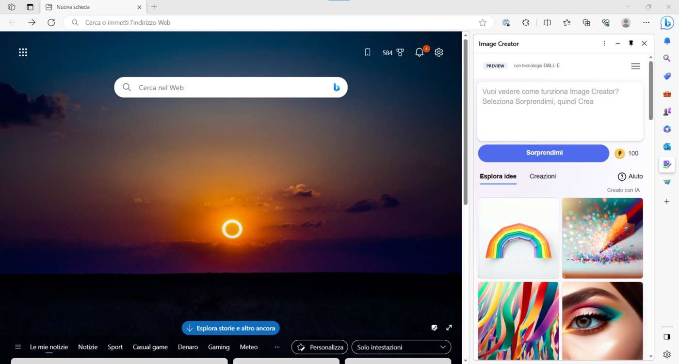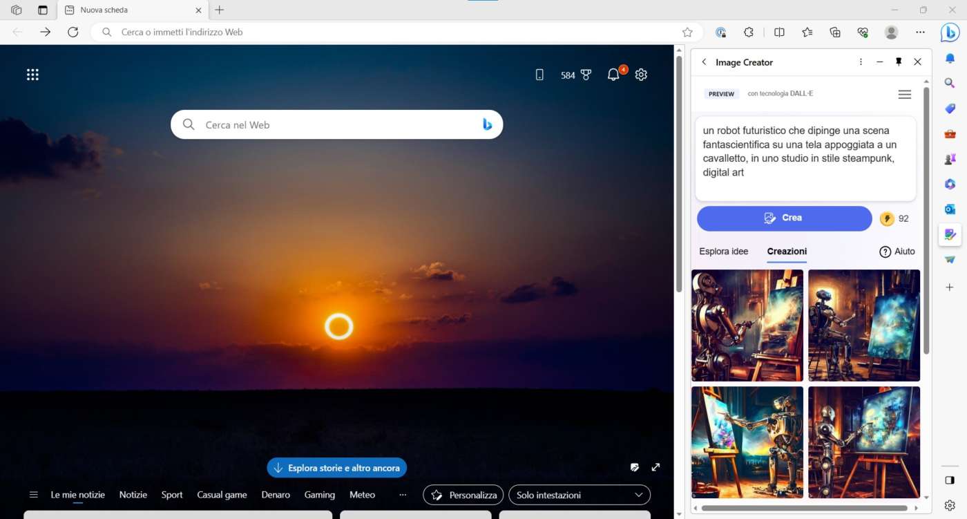 A questa funzionalità, basata anch’essa su una versione avanzata del modello DALL∙E sviluppato da OpenAI, società partner di Microsoft, si può accedere da Bing e anche direttamente dall’interfaccia dell’ultima versione del browser Edge.