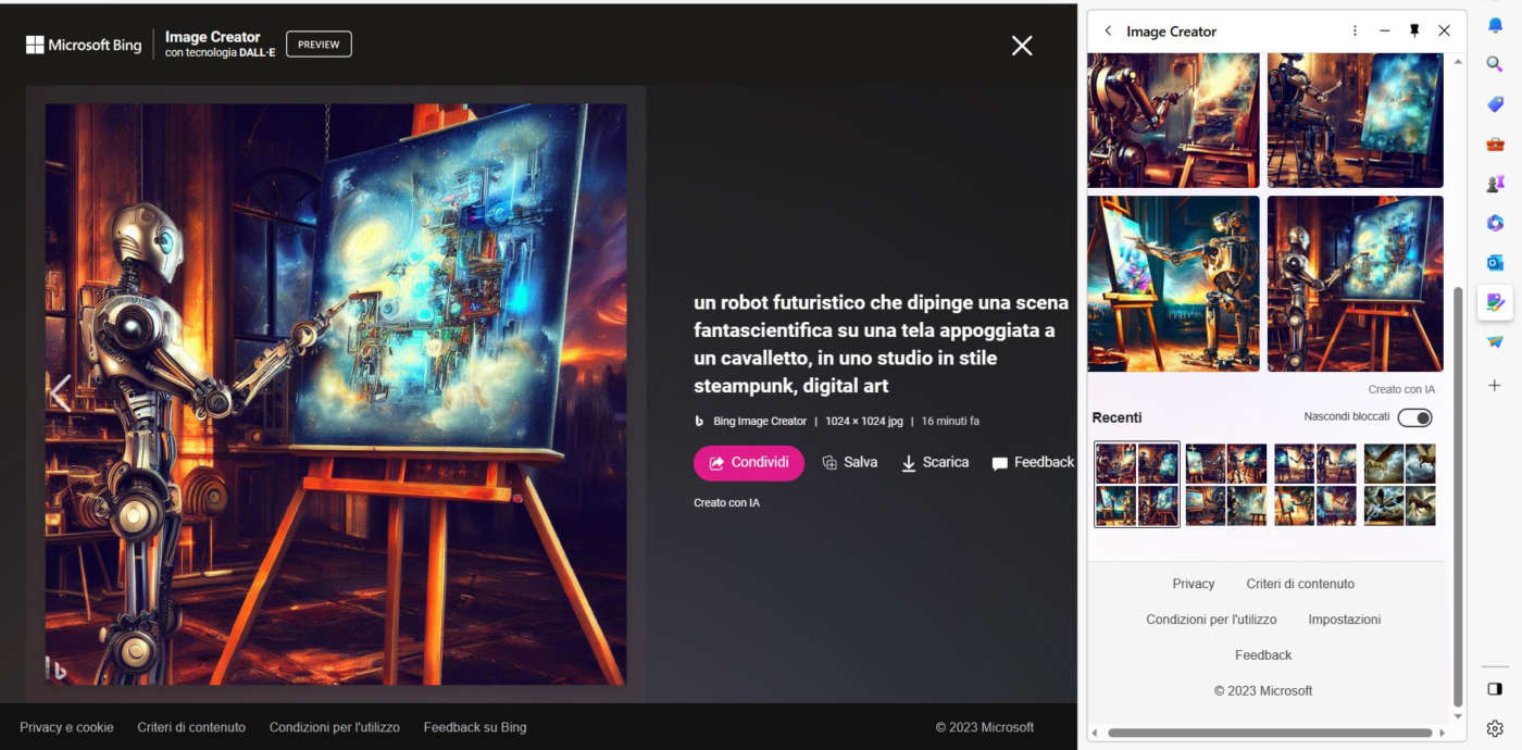 In ogni caso, le immagini create da Image Creator con la tecnologia di intelligenza artificiale possono essere non di rado sorprendenti. L’AI generativa per le immagini – come sta dimostrando anche Adobe con la sua tecnologia Firefly – sembra racchiudere il potenziale per avere un impatto importante in molti ambiti, anche professionali.