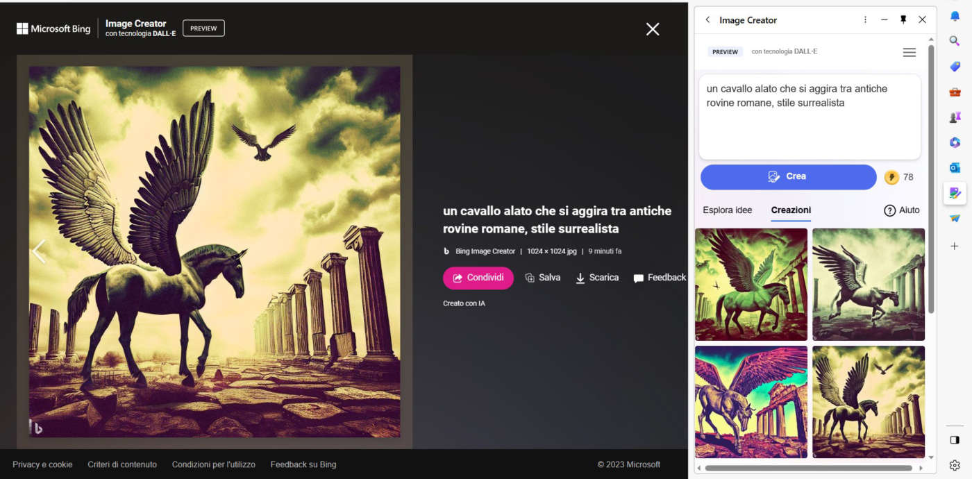 Si possono ottenere risultati molto interessanti con Image Creator, soprattutto se man mano rifiniamo le tecniche di descrizione da usare per il prompt.