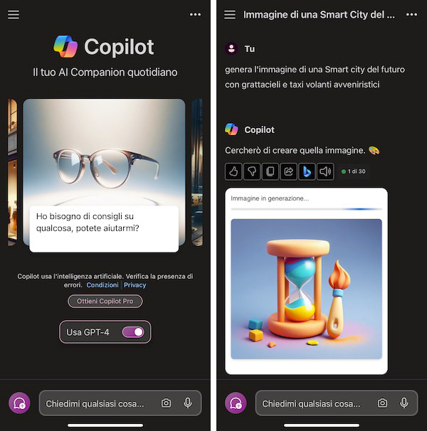 Oltre a consentire di ricevere risposte a domande su qualsiasi argomento dal chatbot, di riconoscere gli oggetti con l’AI, e ad altre funzioni di intelligenza artificiale, l’app Microsoft Copilot per iOS ci permette anche di creare immagini con semplici prompt di testo, con l’ausilio dell’AI generativa, in modo facile e rapido sul nostro iPhone.